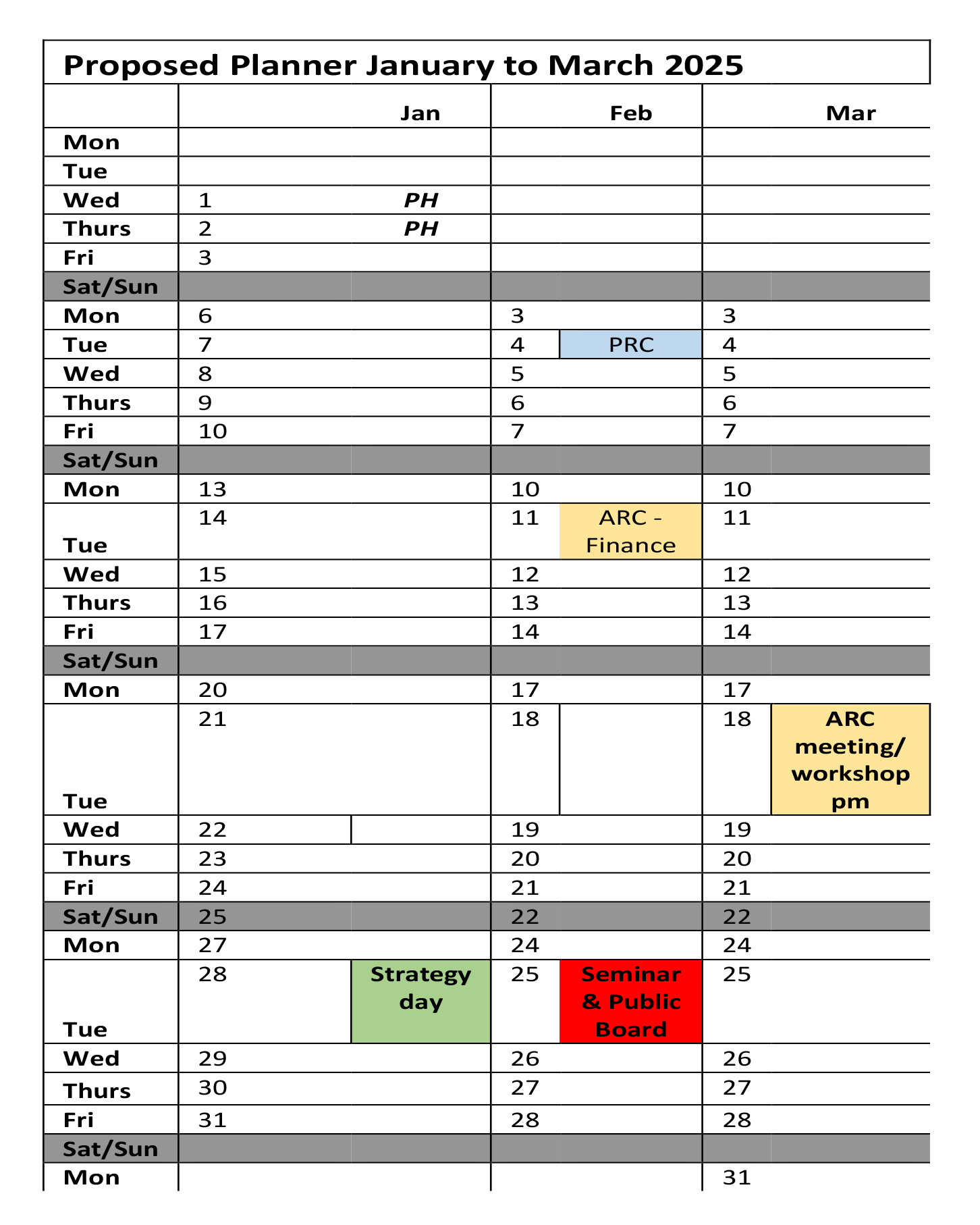 Draft Board and Committee Meeting Schedule to March 2025