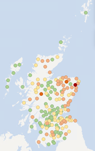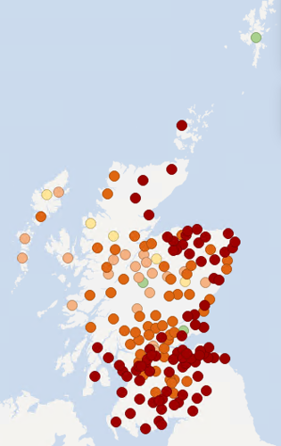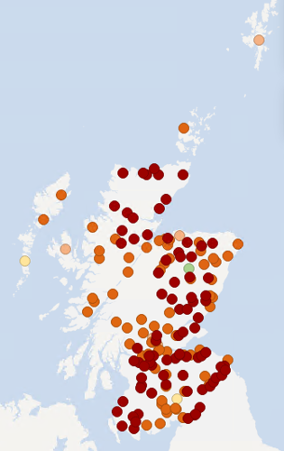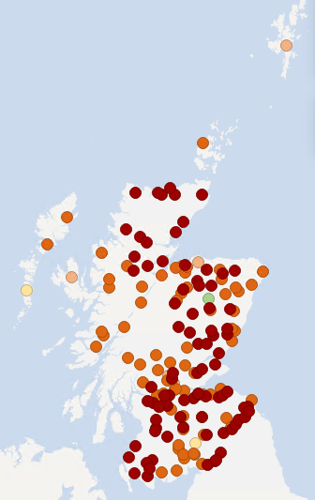 The maps below show recent groundwater and loch level compared to the long-term record at each individual station. Level is reported as high or low compared to the typical (‘normal’) level range for the time of year.