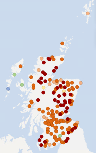 Over the last 3 months, very dry conditions have dominated, with some parts of the west being quite dry, but Aberdeenshire and the far north-east, as well as parts of the central belt and southern Scotland, being extremely dry. This is reflected in the very low to extremely low river flows across much of the country.