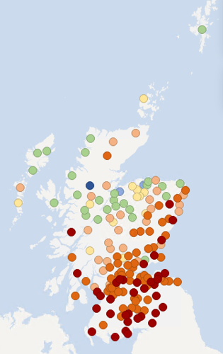 - Current water scarcity levels - © SEPA. Some features of this information are based on digital spatial data licensed from the Centre for Ecology and Hydrology © NERC (CEH). Contains OS data © Crown copyright (and database right).