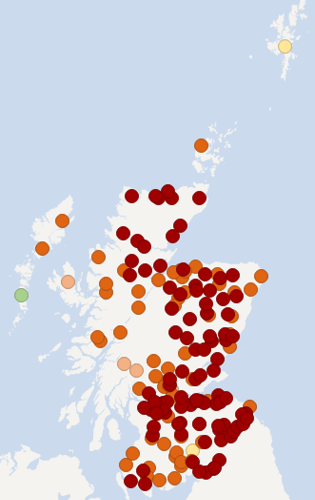 Most of the rest of the country remains at Alert, except the Inner Hebrides and Outer Hebrides which are at Early Warning.