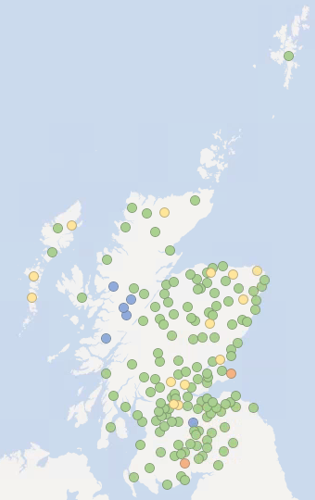 Shetland has been raised to Early Warning and the Conon catchment has recovered to Normal Conditions. The rest of the country remains at Early Warning or Normal Conditions.